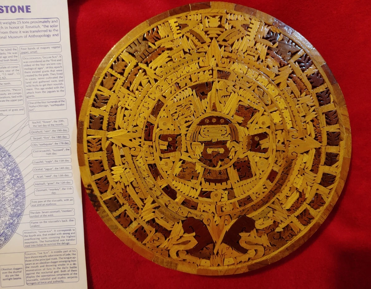 Wooden Aztec Sun Stone Calendar With Information Sheet | eBay
